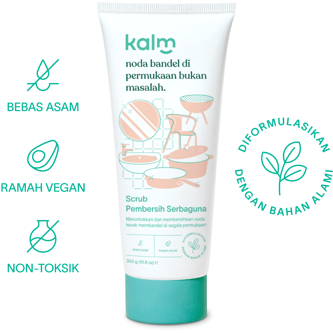 Kalm Scrub Pembersih Serbaguna, solusi efektif untuk memberikan sentuhan baru pada segala permukaan di rumah. Ideal untuk berbagai jenis permukaan, seperti panci, kaca, oven, keran, wastafel, pemanggang, keramik, kompor, dan lainnya.