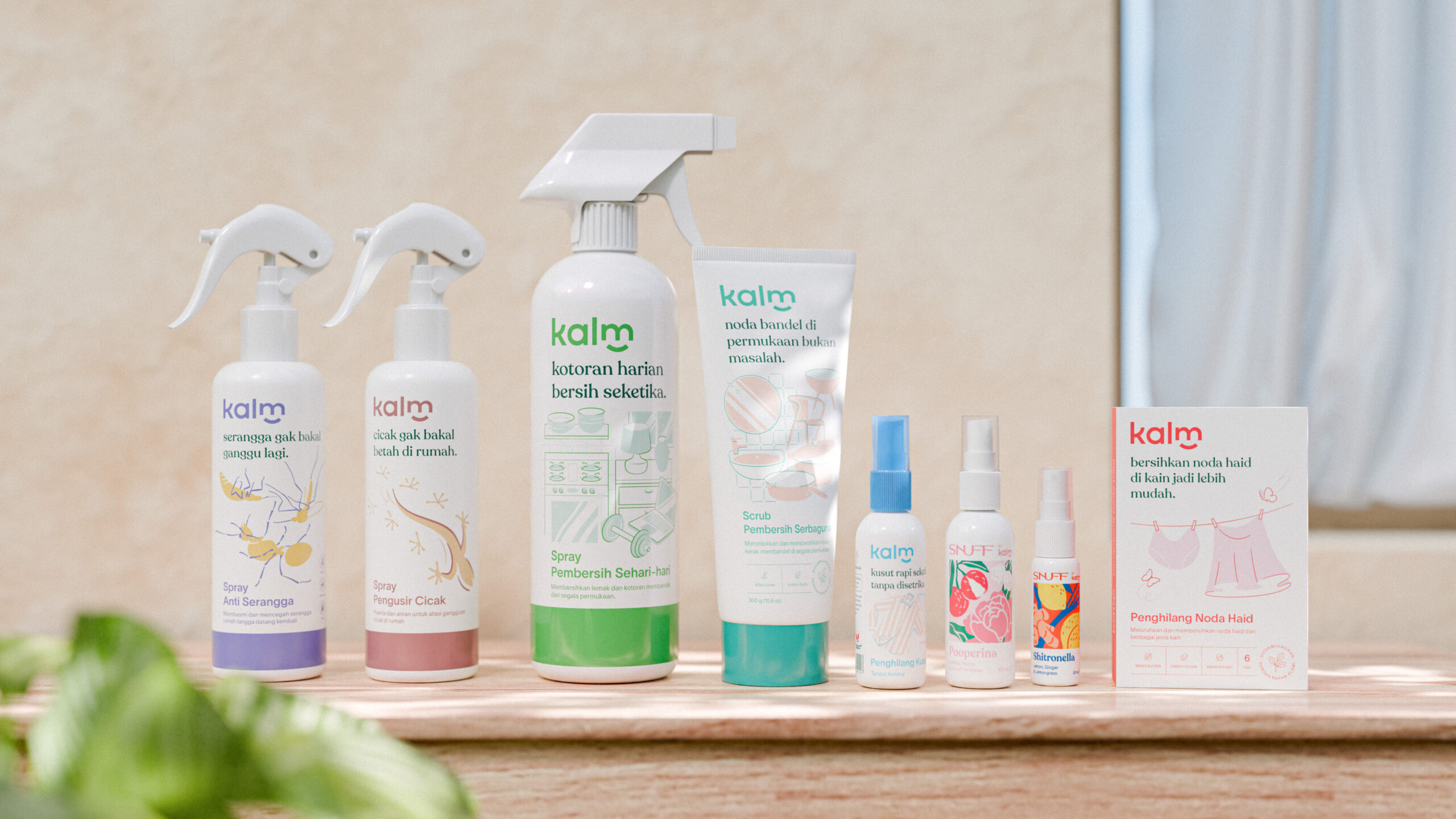 Sebagian besar produk Kalm dibuat dengan cinta di Indonesia, oleh tangan-tangan lokal yang mengerti kebutuhan kita sehari-hari.