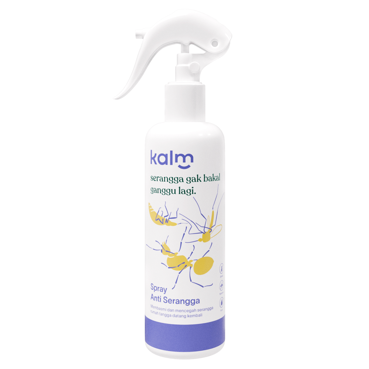 Kalm Spray Anti Serangga — solusi efektif dan aman untuk melindungi rumah dari gangguan serangga. Diformulasikan dengan bahan aktif yang terinspirasi dari alam, efektif mengusir serangga seperti semut, nyamuk, kutu dan lainnya. Memberikan perlindungan lebih lama dibandingkan insektisida aerosol dan membantu mencegah serangga datang kembali.